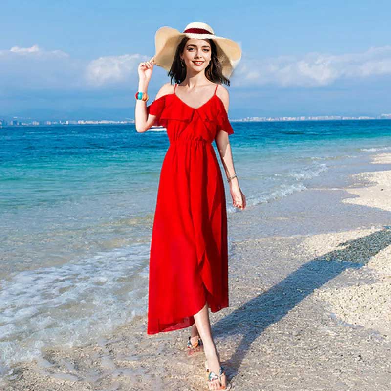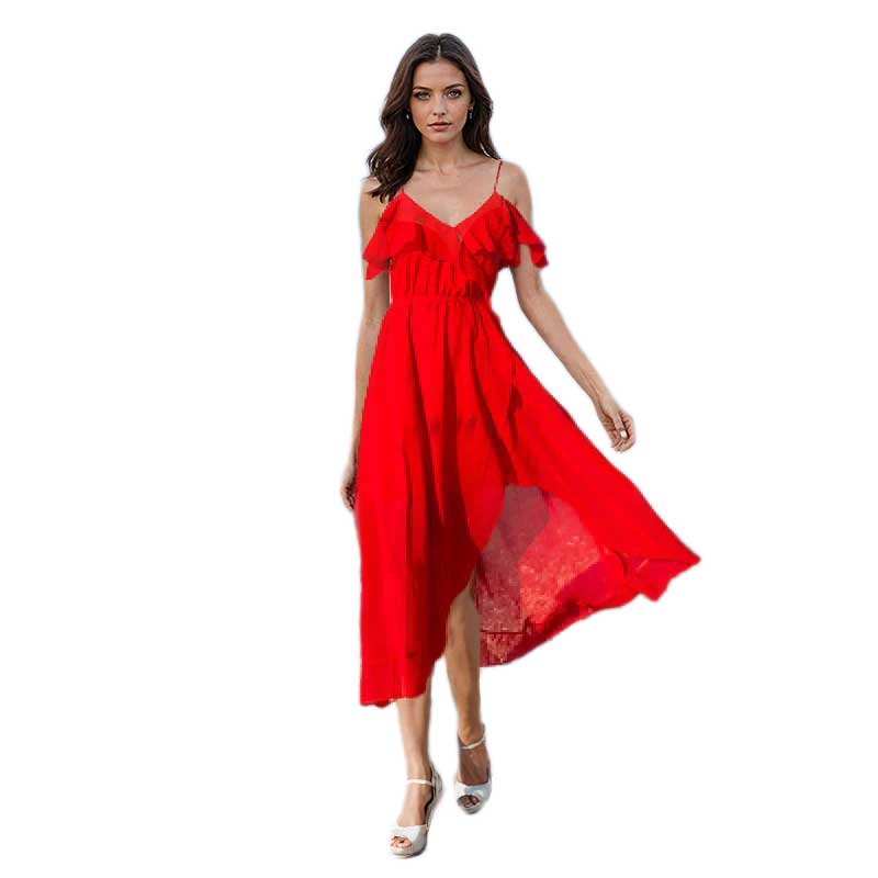 Add a touch of bohemian flair to your wardrobe with this versatile red dress, perfect for any summer occasion.