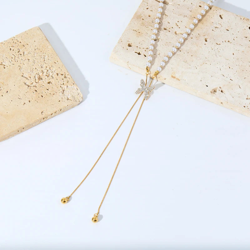 Elevate your style with this stunning Butterfly Pearl Long Pendant Necklace, crafted from premium 316L stainless steel for a durable, waterproof, and tarnish-resistant finish. Designed for modern women, this elegant clavicle necklace features a delicate 1.6cm x 1.6cm butterfly pendant paired with a long pearl-accented chain, making it a perfect statement piece for any occasion.