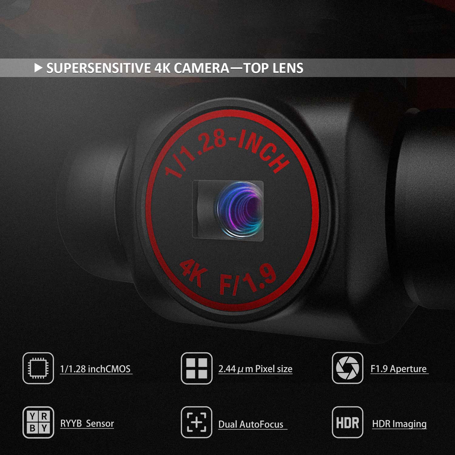 1/1.28 Inch CMOS Sensor,10km Video Transmission,Obstacle Sensing in 3 Directions,Level 5 Wind Resistance,28-Min Max Flight Time