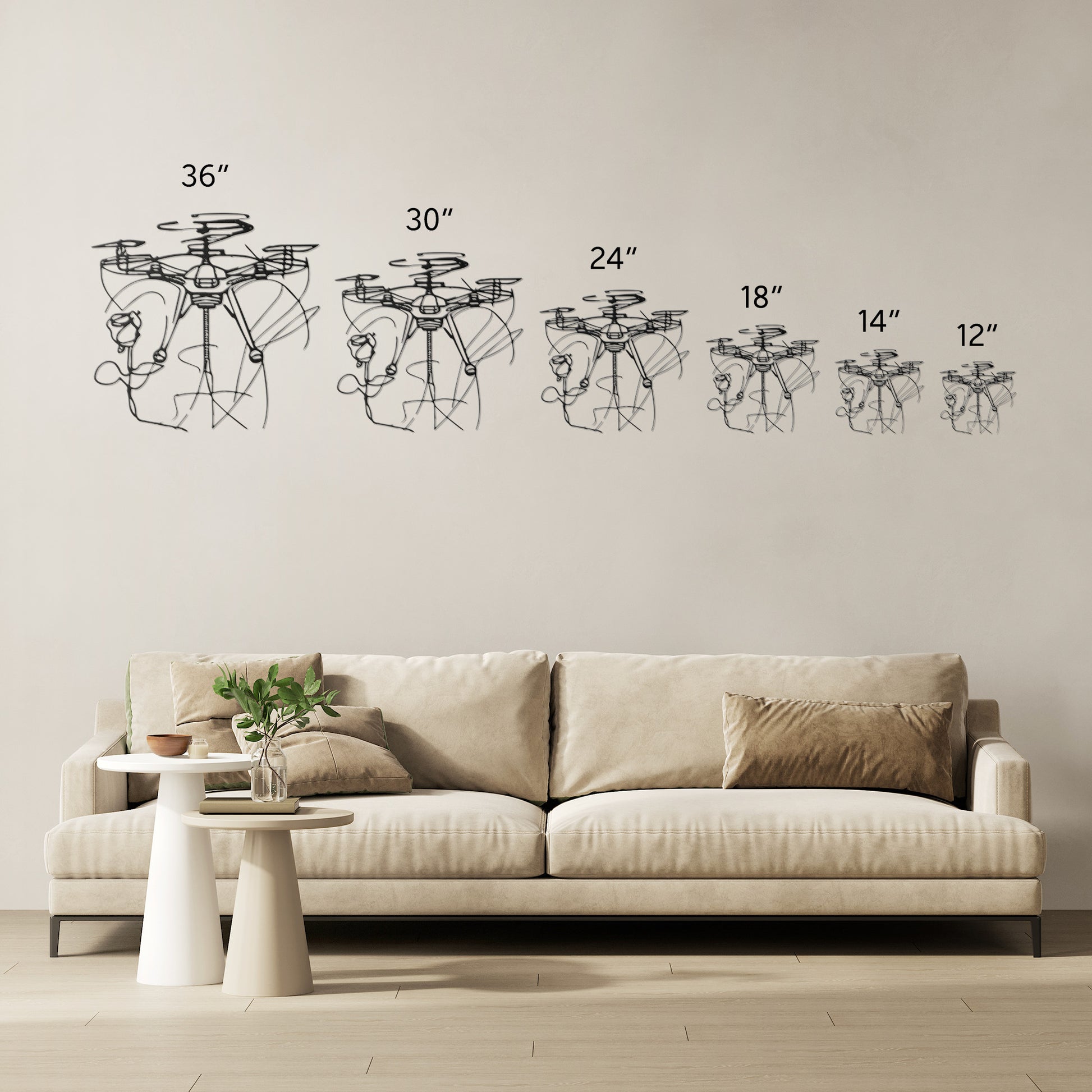 • 6 Sizes - 36", 30", 24", 18", 14", 12" *Selected size is based on the maximum height or width of the sign depending on physical orientation