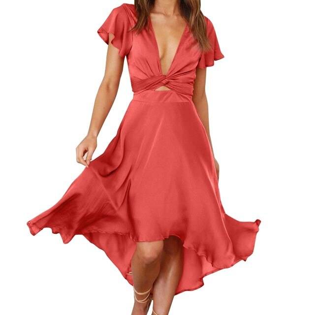 Get This Women's Fashion Soild Color Print Glitter Party Dress Deep V Neck Short Sleeve Dress